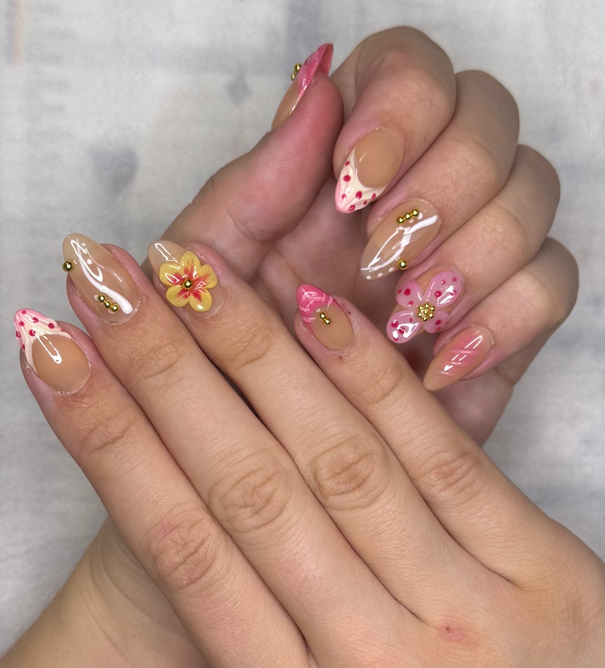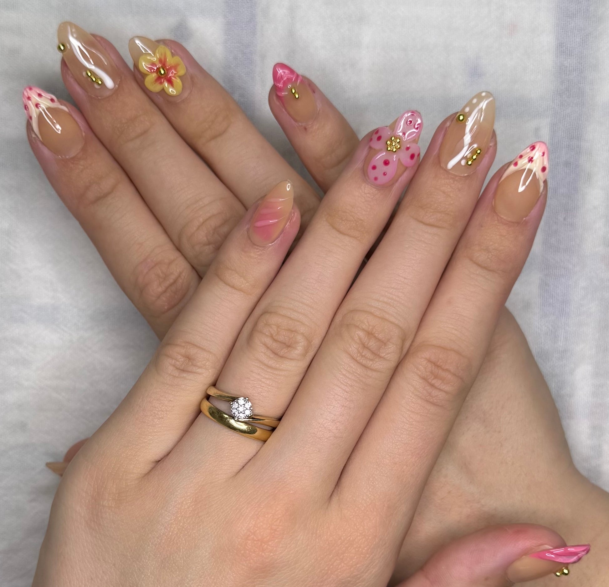 Ce set de press on nails nude et rose met à l’honneur fleurs 3D et motifs abstraits pour une manucure joyeuse, tendance et ultra féminine. Idéal pour un look estival audacieux. Pose réutilisable, sans colle, parfaite pour sublimer vos mains en un clin d’œil.