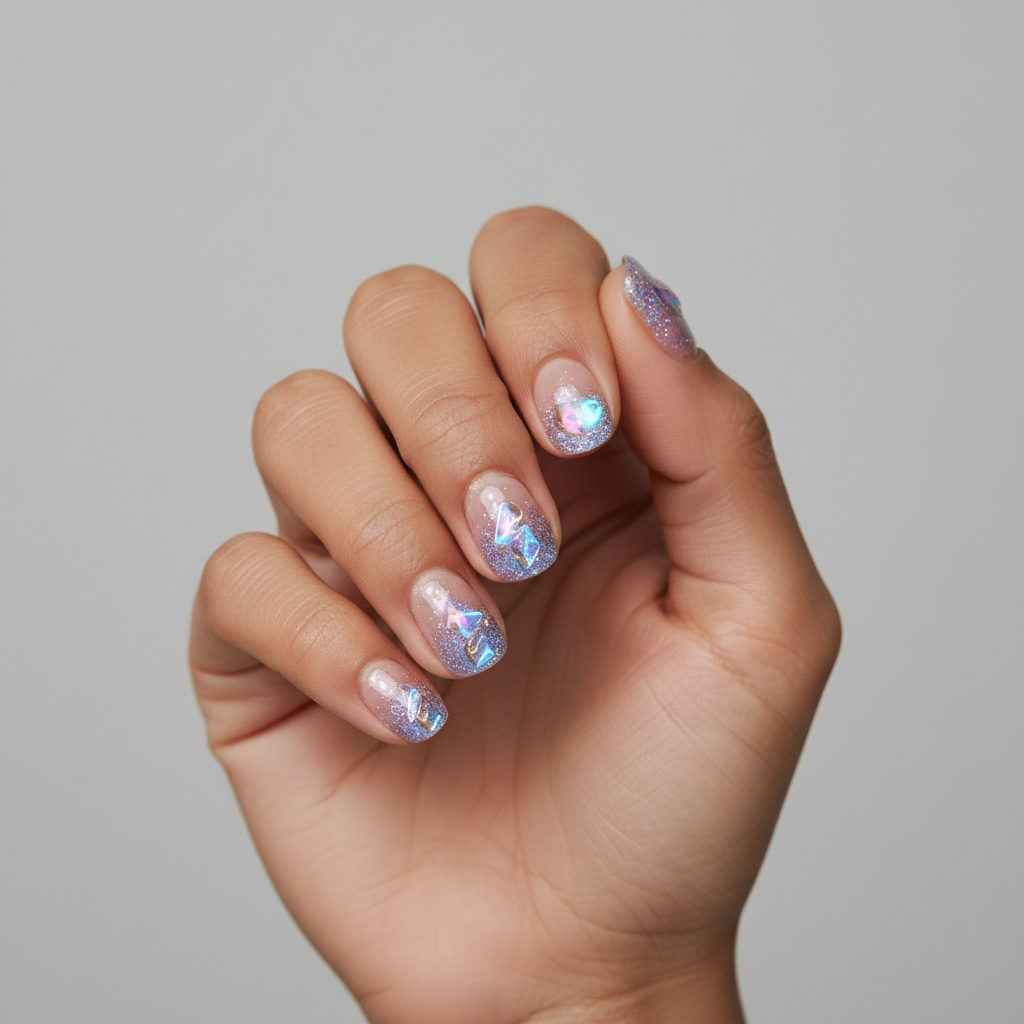 • Application : À fixer avec des stickers adhésifs ou de la colle à ongles (inclus dans le kit)