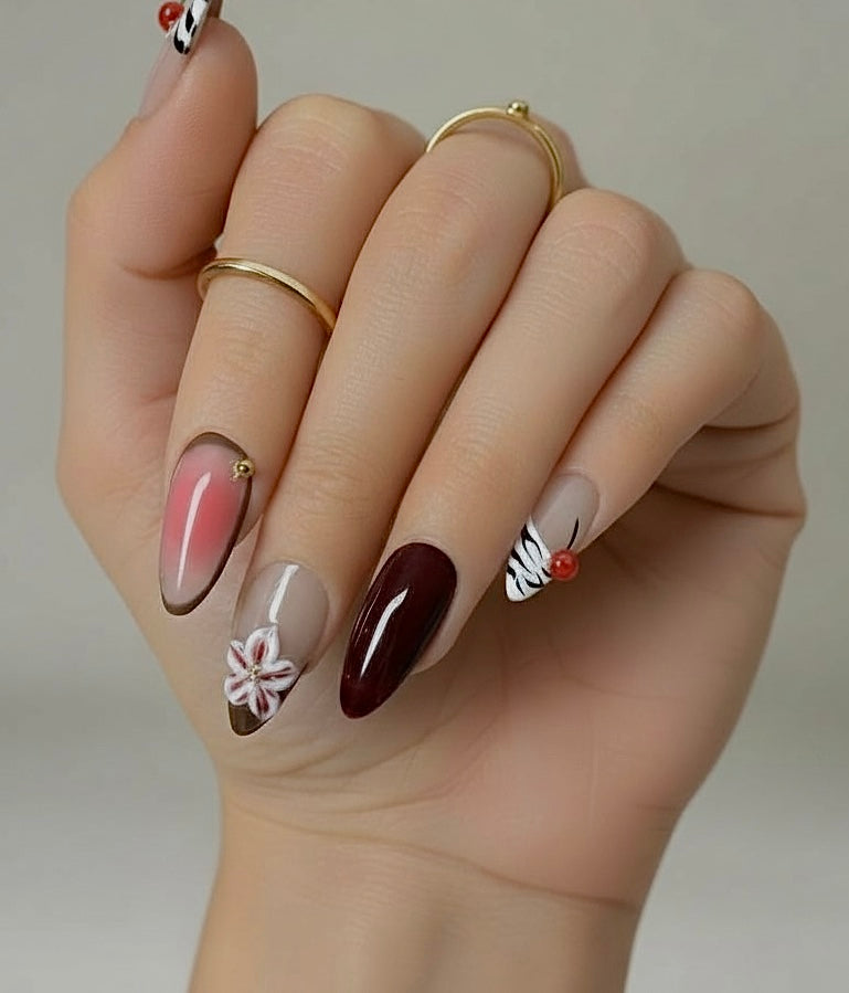 Ce design unique mélange des touches de bordeaux profond, de rose poudré, de motifs zébrés et de petits détails dorés pour un rendu audacieux, féminin et irrésistible.💣