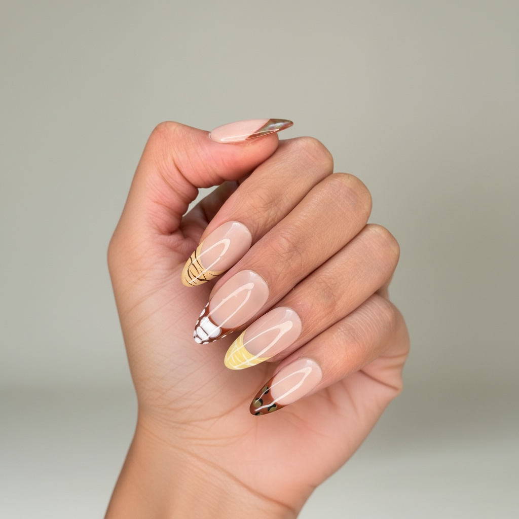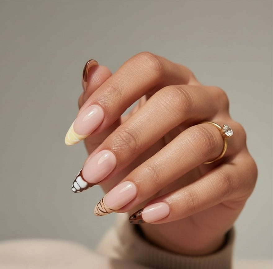 Minimaliste mais terriblement tendance, le set Café tigré est le parfait équilibre entre douceur et caractère. Avec sa base nude soignée et ses pointes travaillées façon latte art, il apporte une touche moderne à n’importe quelle tenue.