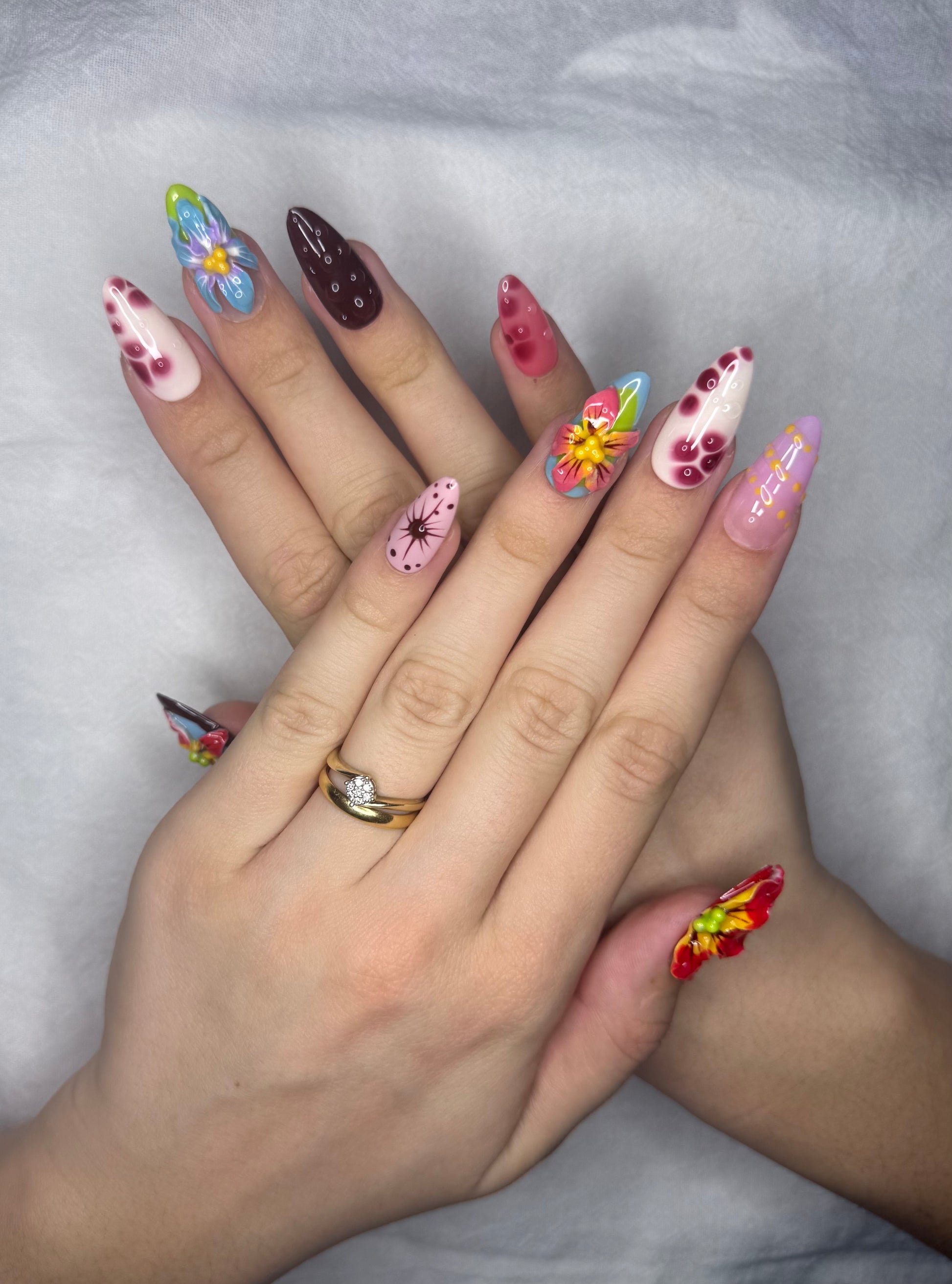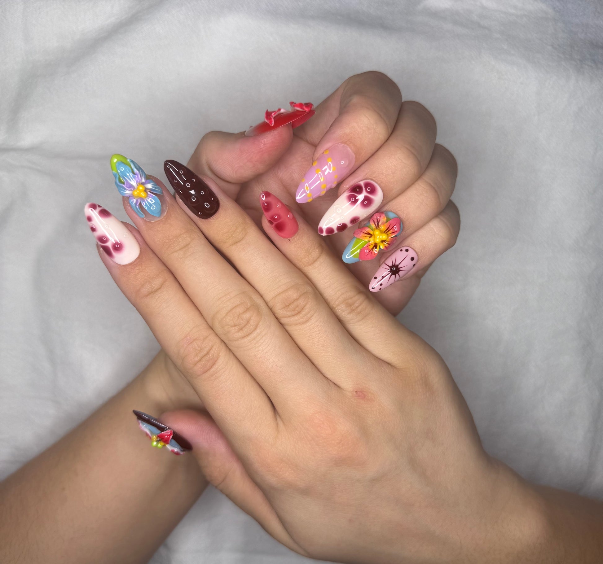 Ce set de press on nails ultra coloré mélange fleurs 3D XXL, pois, abstrait et effets graphiques pour une manucure fun et artistique. Parfait pour un look audacieux, estival et 100 % tendance. Une pose d’ongles réutilisable, originale et sans colle, idéale pour se démarquer.