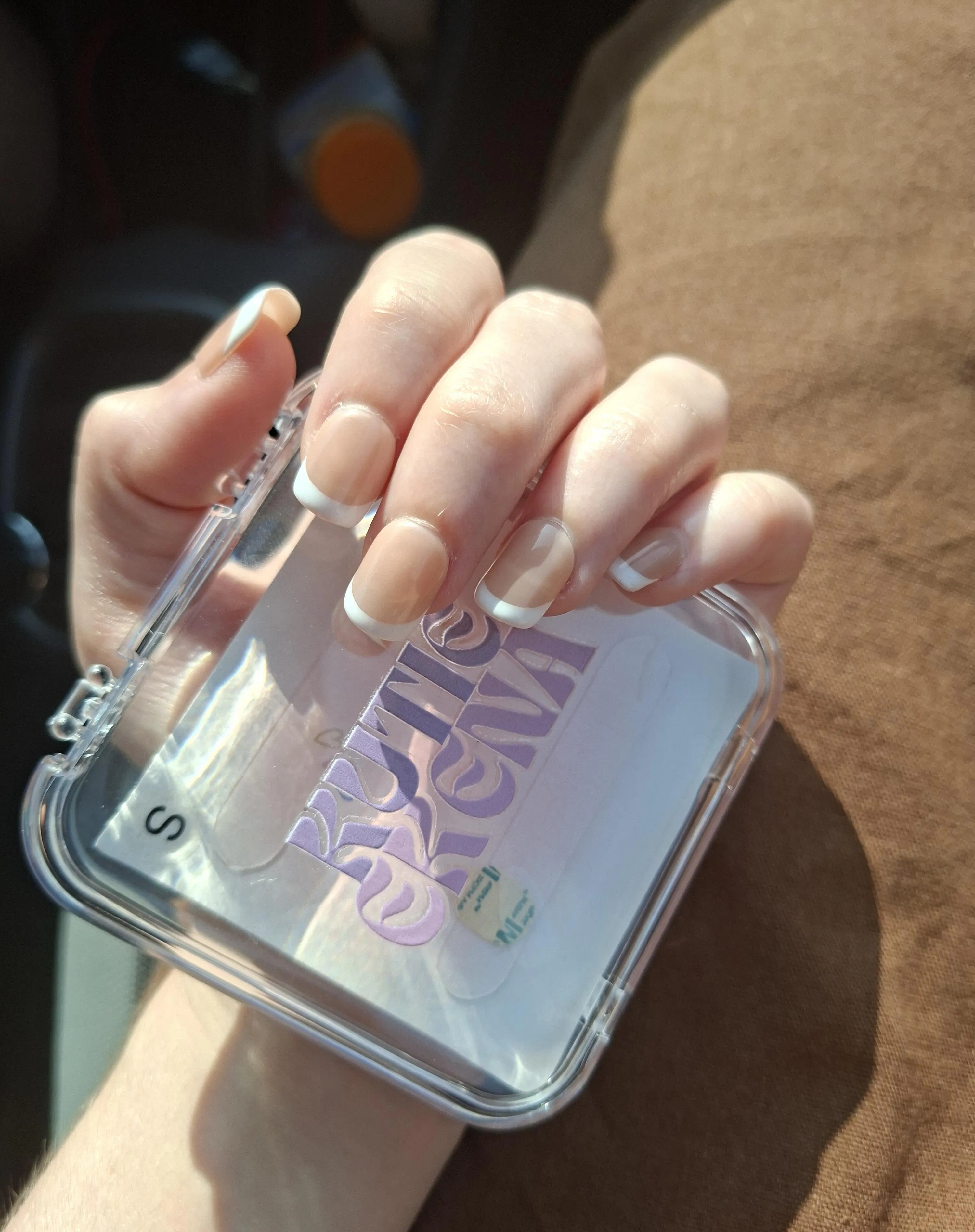 Raffinée et sophistiquée, ce set est une version moderne et classique de la célÚbre french manucure. Avec ses extrémités blanches parfaitement définies et sa base nude transparente, ce set de faux ongles réutilisables apporte une touche de classe intemporelle à vos mains.