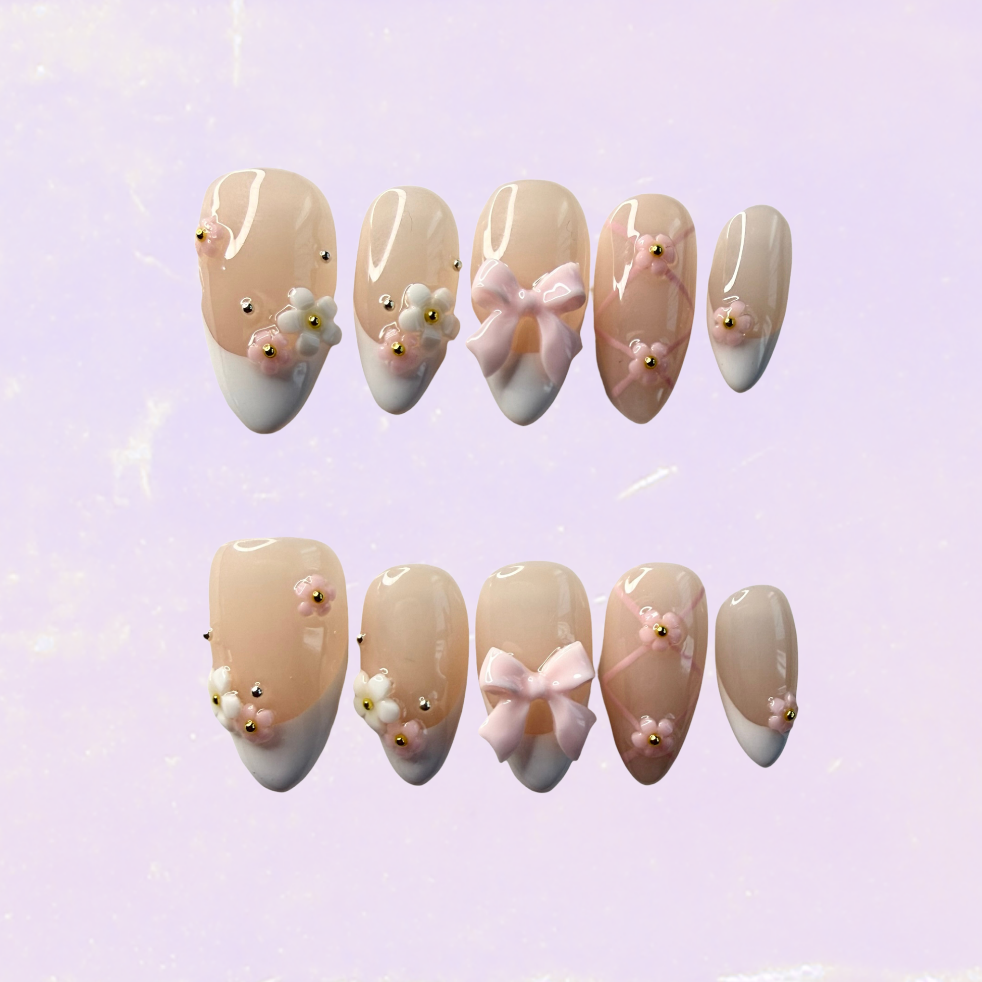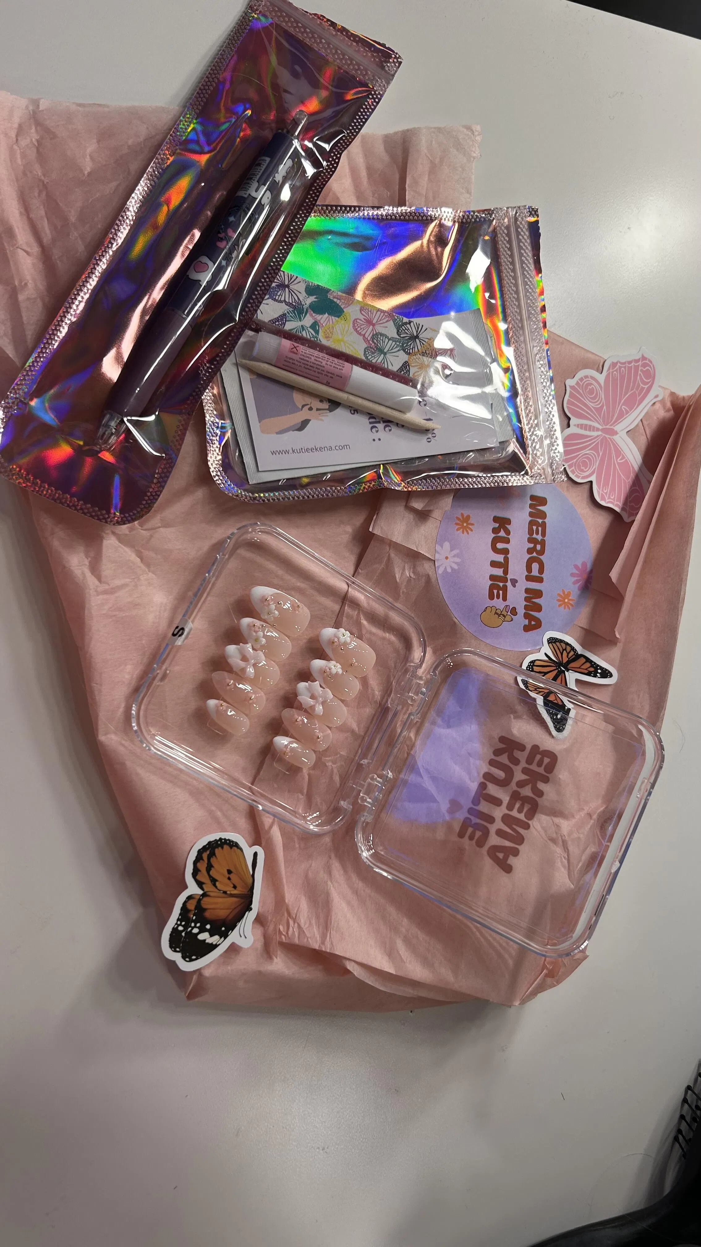 đOffrez Ă vos mains une touche de fĂ©erie avec Coquette, un set de faux ongles rĂ©utilisables au design dĂ©licat et raffinĂ©. Ses dĂ©tails en relief, ses fleurs en 3D et ses petits nĆuds pastel apportent une Ă©lĂ©gance romantique et fĂ©minine Ă votre look. IdĂ©al pour une occasion spĂ©ciale ou simplement pour se sentir prĂ©cieuse au quotidien.