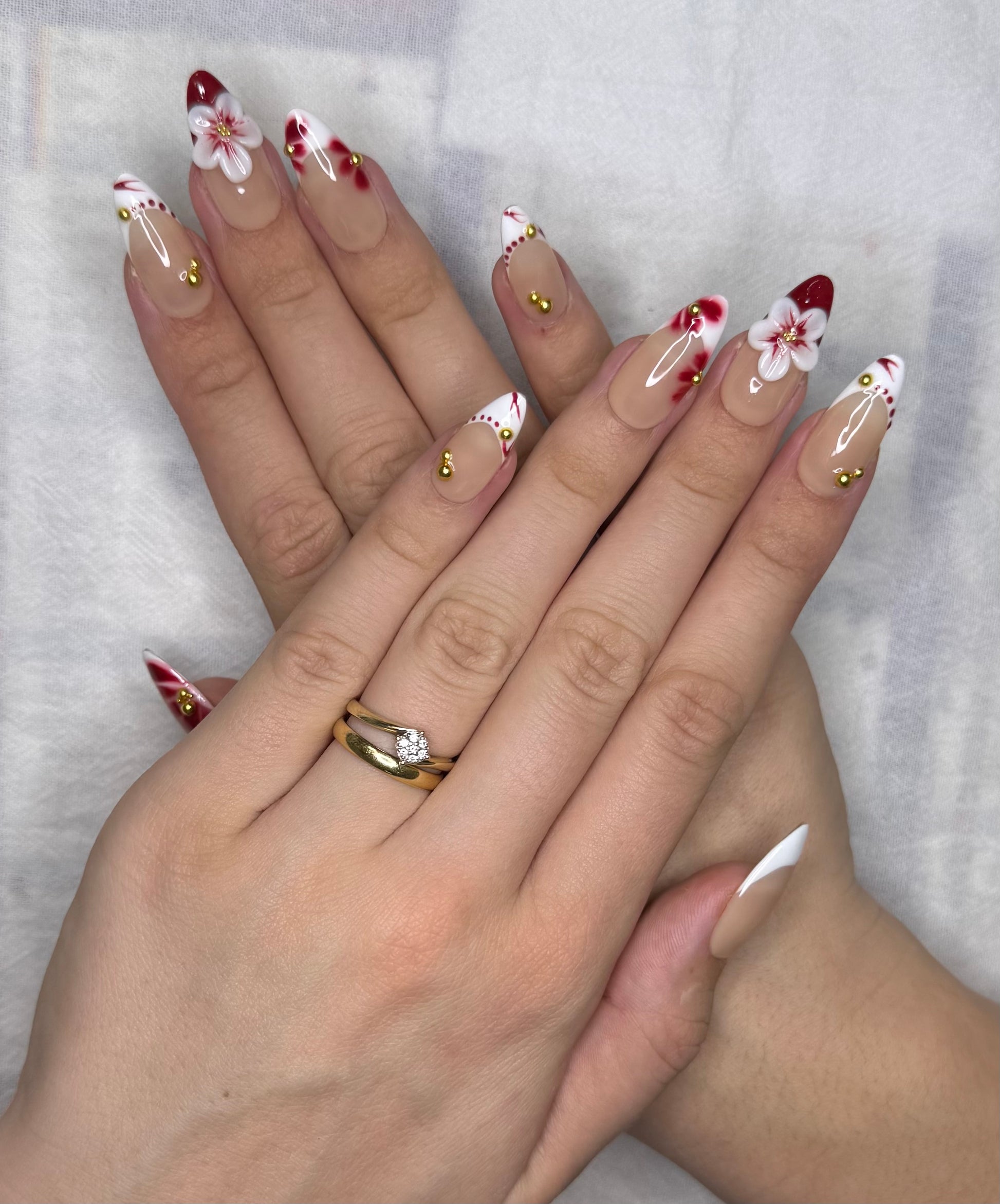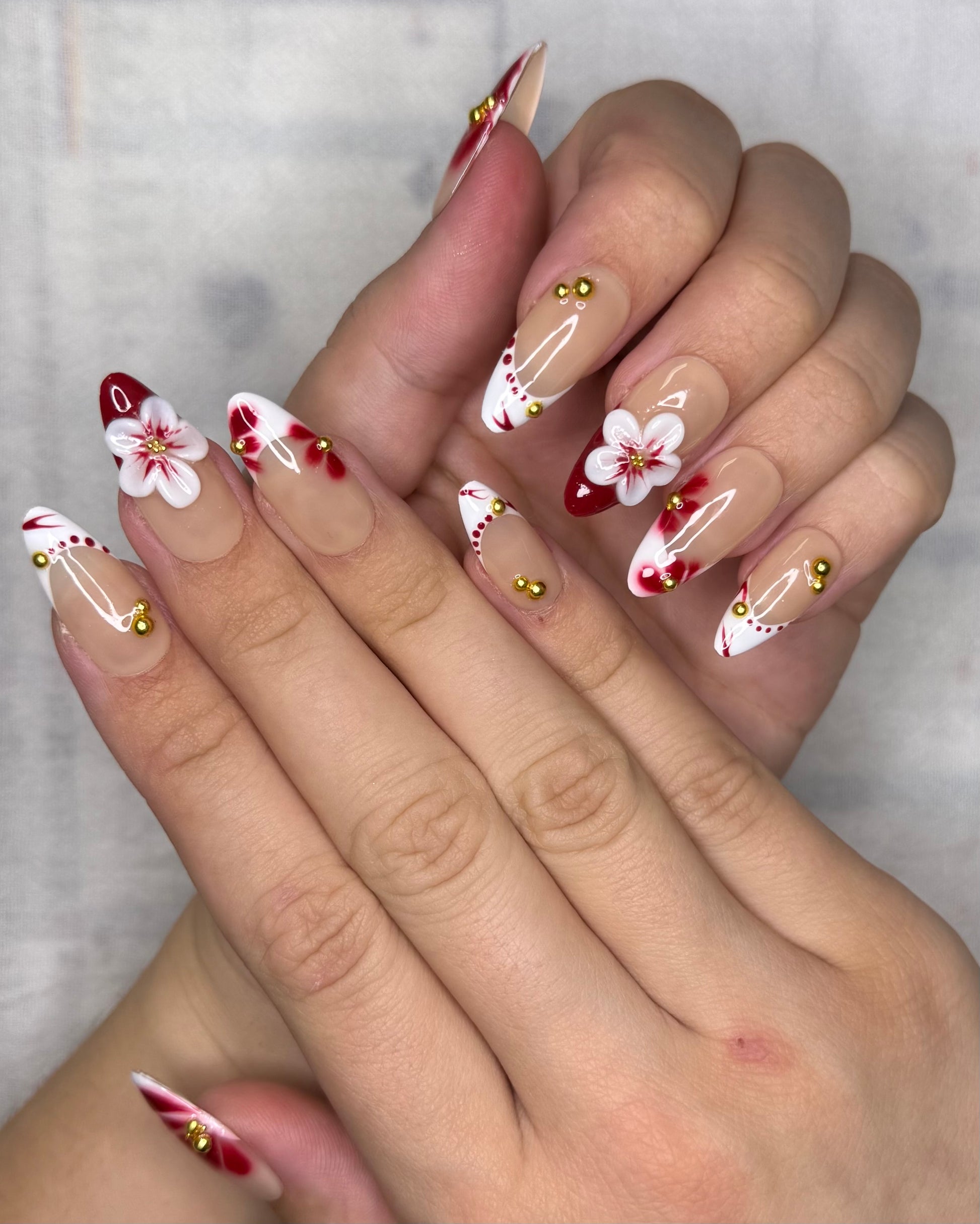 Ce set de press on nails nude et bordeaux offre une manucure florale chic avec ses fleurs peintes à la main, sa fleur 3D centrale et ses strass dorés. Parfait pour un look élégant et sophistiqué sans rendez-vous en institut. Idéal pour une pose d’ongles tendance, rapide et réutilisable.