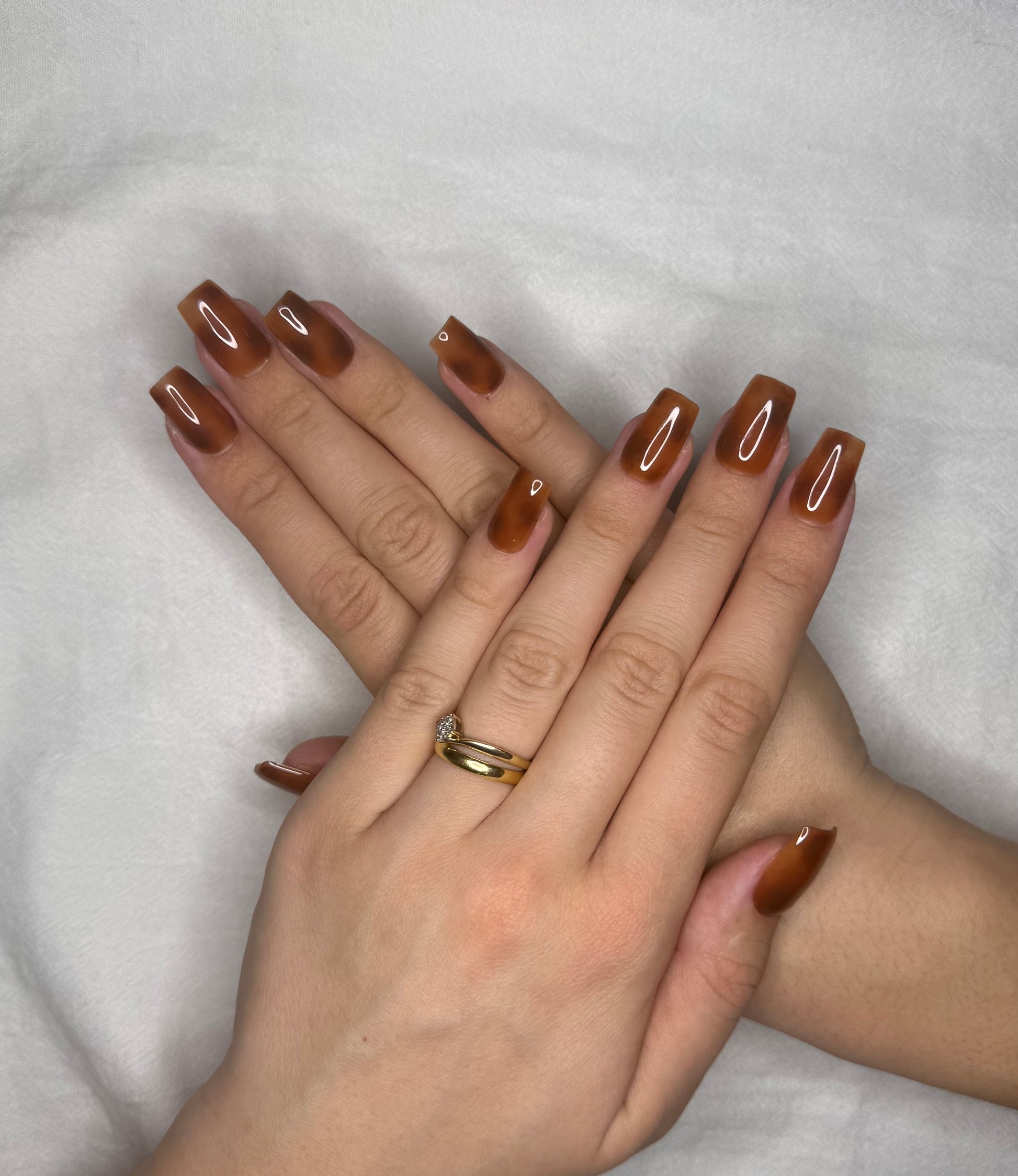 Inspiré des volutes de crème qui se mêlent à l’espresso, le set Macchiato marie des teintes brunes et beiges dans un effet marbré irrésistible. Le résultat ? Une manucure subtilement sophistiquée, à la fois douce et audacieuse, parfaite pour toutes celles qui aiment le café… et le style !